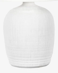 The Phoenix Table Lamp is subtly detailed and brings a refined classic look to your side table or console. With a ceramic base in a matte white finish, the lamp is intricately textured and sculptural in feel. A white linen shade and brass finial top the lamp, highlighting its thoughtful design.