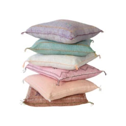 Featuring Moroccan Berber-inspired motifs, these silk sabra pillows come in five different colors and can be used on the floor or on a bed or sofa.