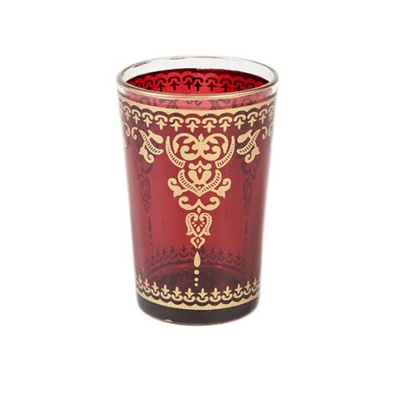 Bring a touch of Moroccan tradition home with this set of tea glasses. Featuring a warm red hue and contemporary Moroccan design, these glasses can be used to serve mint tea or wine, and are also an unconventional holder for tealight candles.