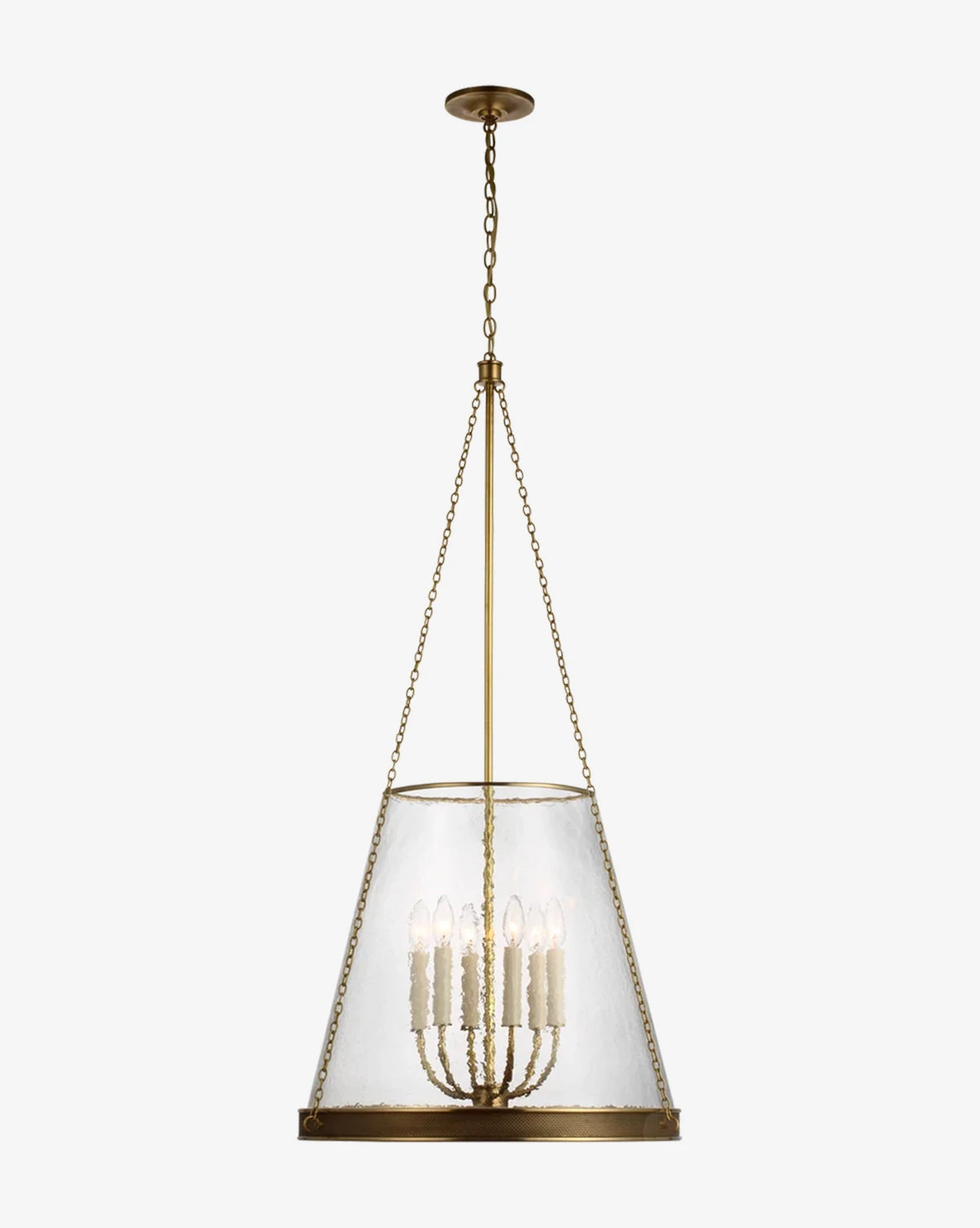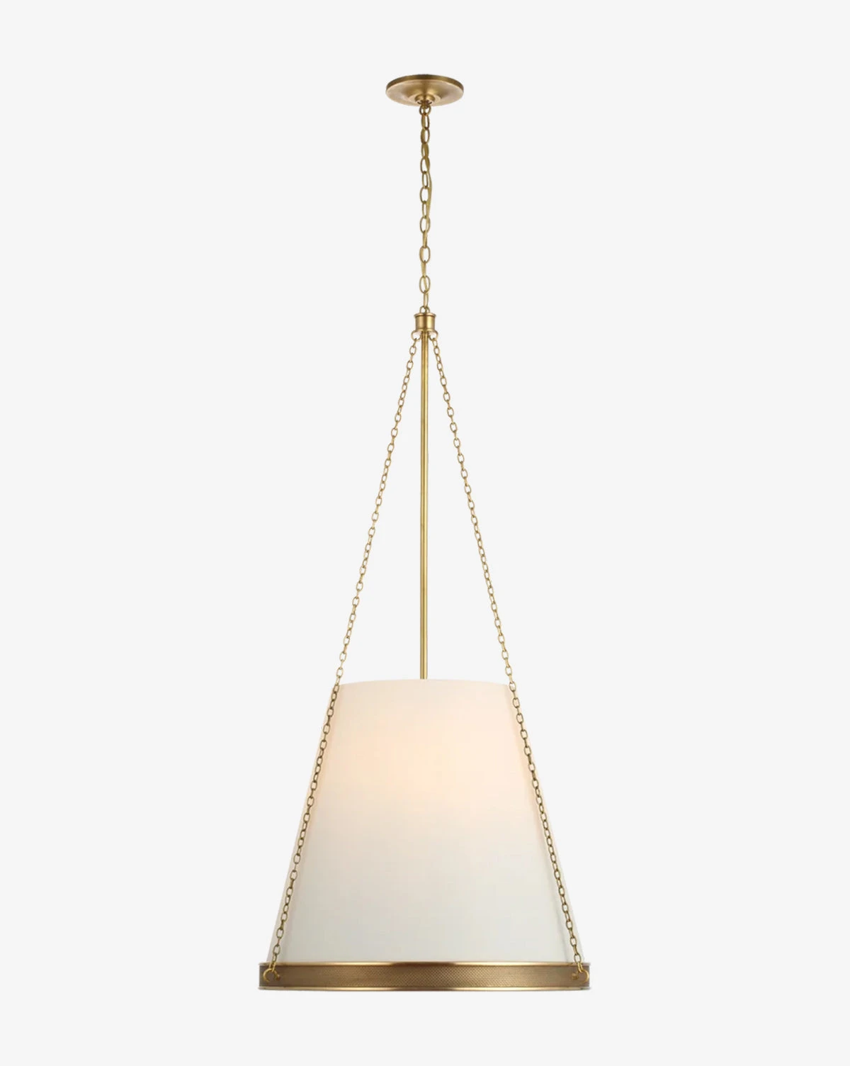 With a wide array of finish options, the transitional Reese Pendant is at home in any space. Finished with a clear shade, so you can see the stunning candelabra, or a linen shade for a more minimalist look, this pendant brightens up your home with its streamlined design.