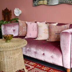 Our Moroccan Sabra Pillows are perfect for adding a refined boho vibe to any space. Each Pillow is detailed with handwork of Moroccan textiles originally as rugs but turned into pillows.Â