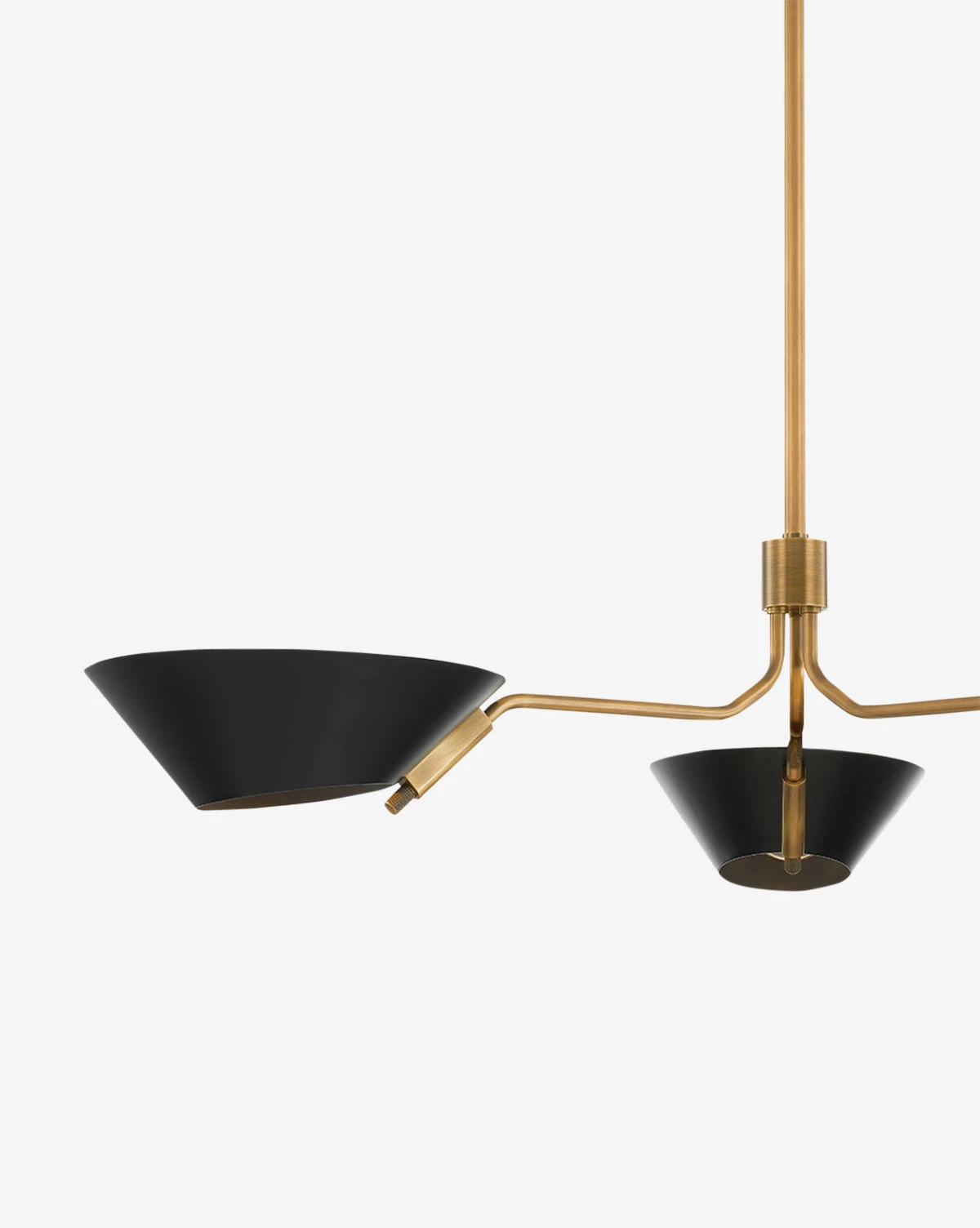 Creatively designed, the Sacramento Chandelier features simple shades that are open on both ends, for soft and even lighting. In two finishes, the neutral shades provide welcome contrast to the sleek patina brass structure.