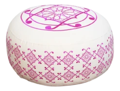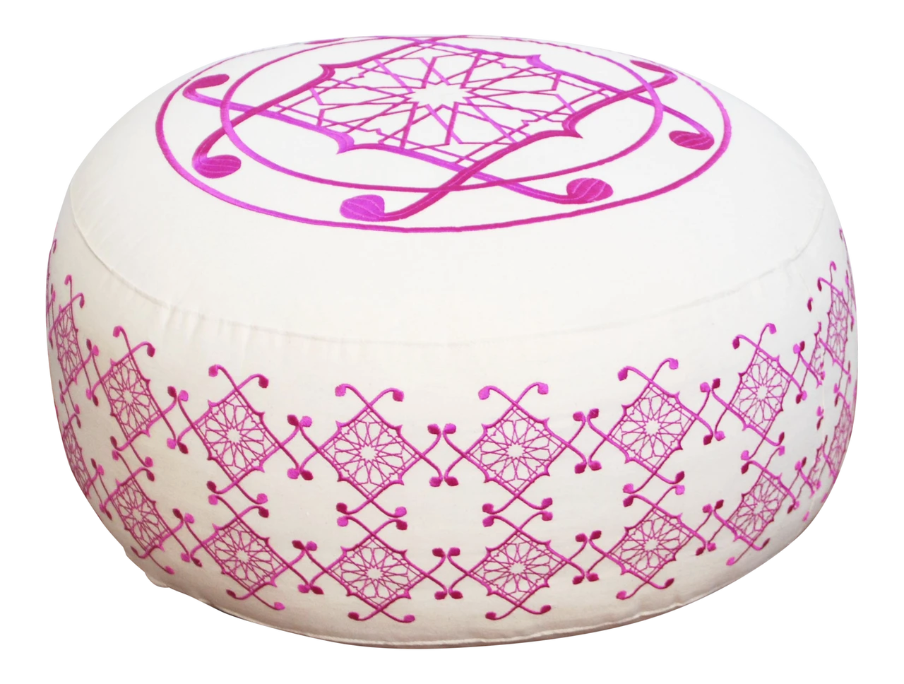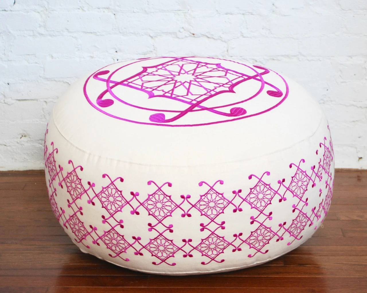 Named after the embroiderer, these beautiful floor pillows are also available in custom colors. Covers have a zipper and are dry clean only.
