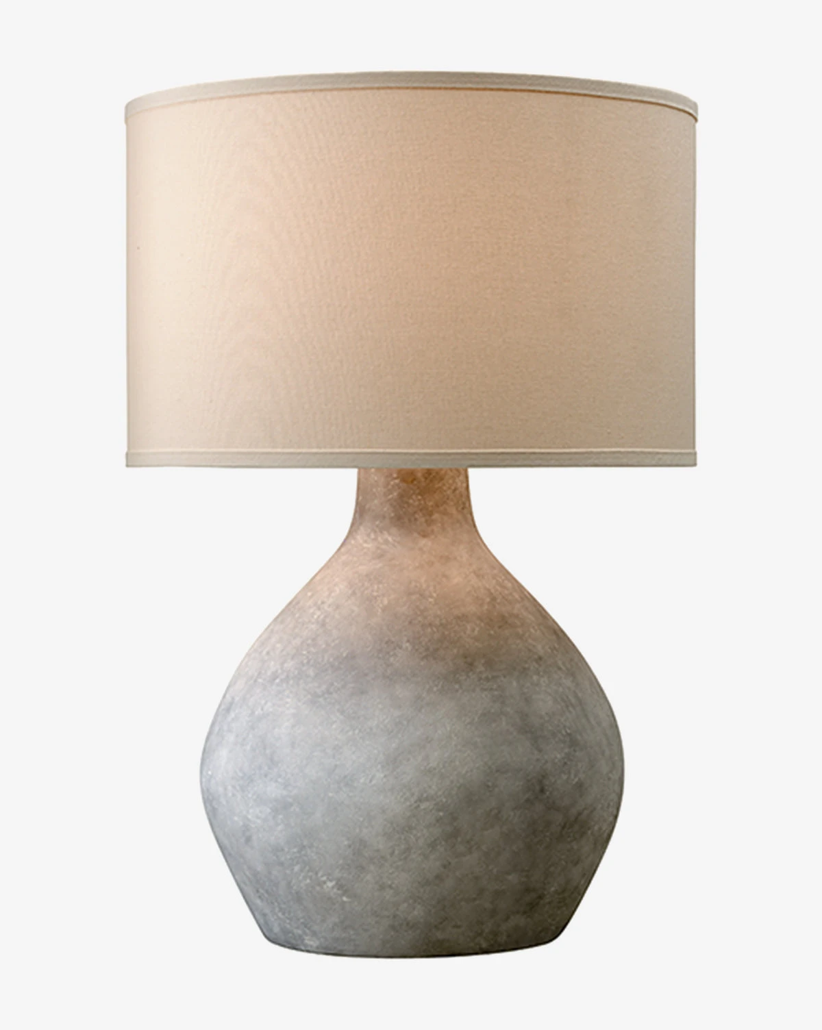 Earthy in texture with a minimalist form, our Stetson Table Lamp brings a cultural feel to your space with its subtle tonal hues. A fabric drum shade sets off the design with a sophisticated contrast, lending to its calming demeanor.
