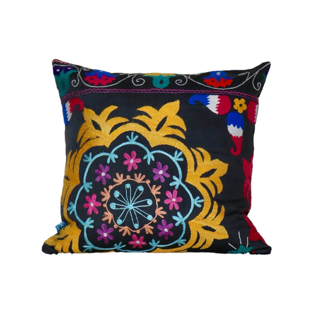 Elevate your space with our exquisite Suzani textile Pillow, meticulously crafted from authentic antique Uzbek Suzani fabric. Featuring vibrant embroidery and intricate patterns, each pillow is a stunning blend of tradition and style—a timeless accent for any bohemian decor.