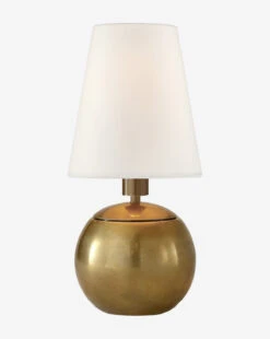 In four classic finishes, the Tiny Terri Accent Lamp makes a big statement with its elongated natural paper shade and bulbous base. Whether its layered on top of coffee table books, or used as an accent to a smaller nightstand, this table lamp brings clean, sophisticated style wherever it’s placed.