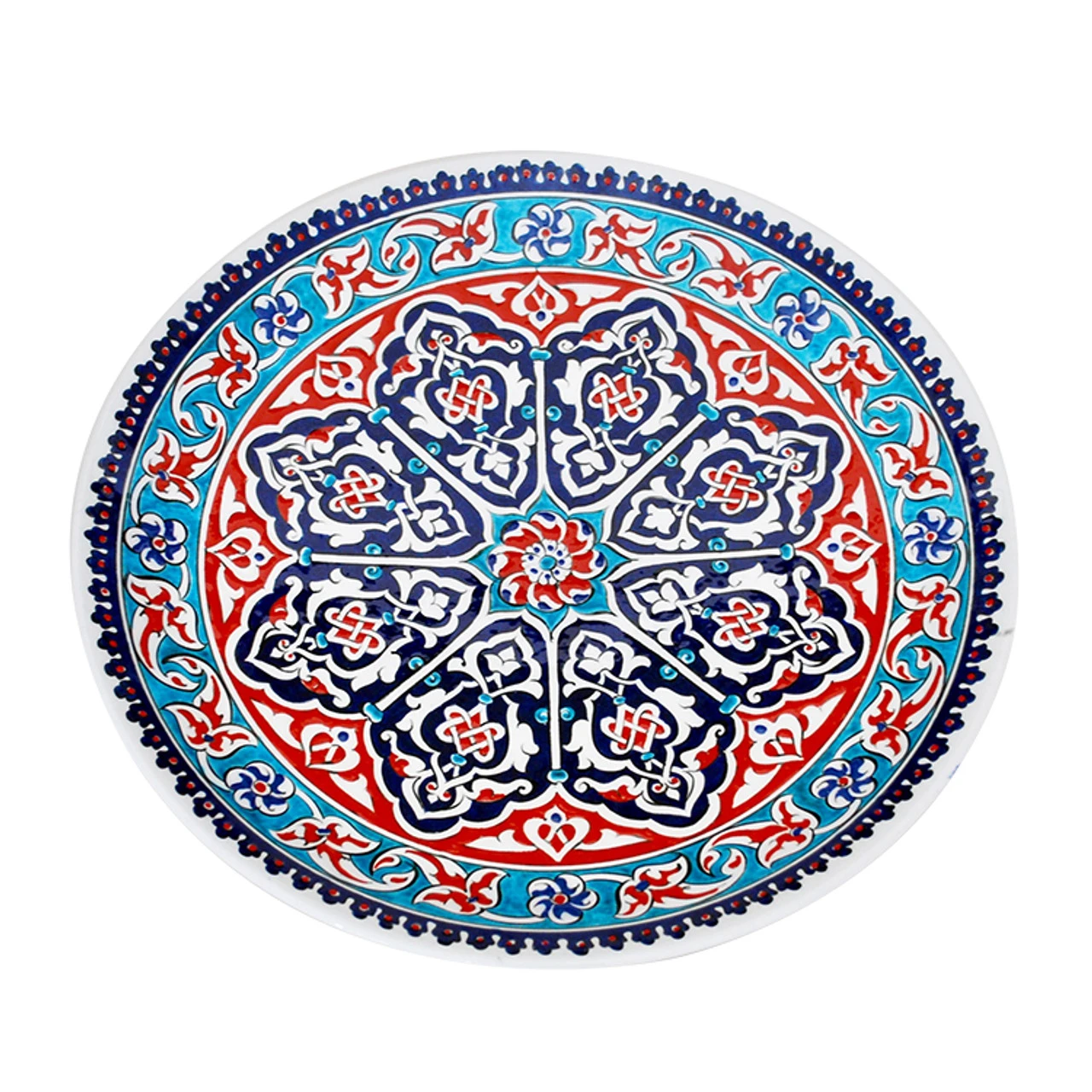 Beautiful ceramic platter handmade in Iznik, Turkey following the local pottery tradition. Featuring lovely tulip, lily of the valley and carnation motifs. Perfect as serving dish or can be hung on the wall as decoration.
