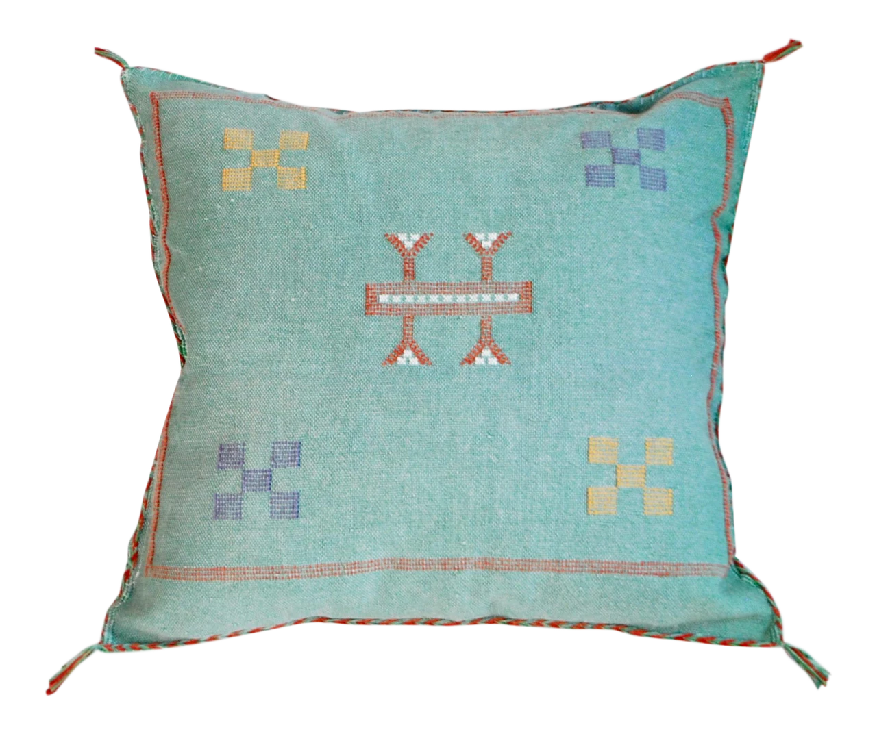 Featuring Moroccan Berber-inspired motifs, these cactus-fiber pillows come in five different colors and can be used on the floor or on a bed or sofa.