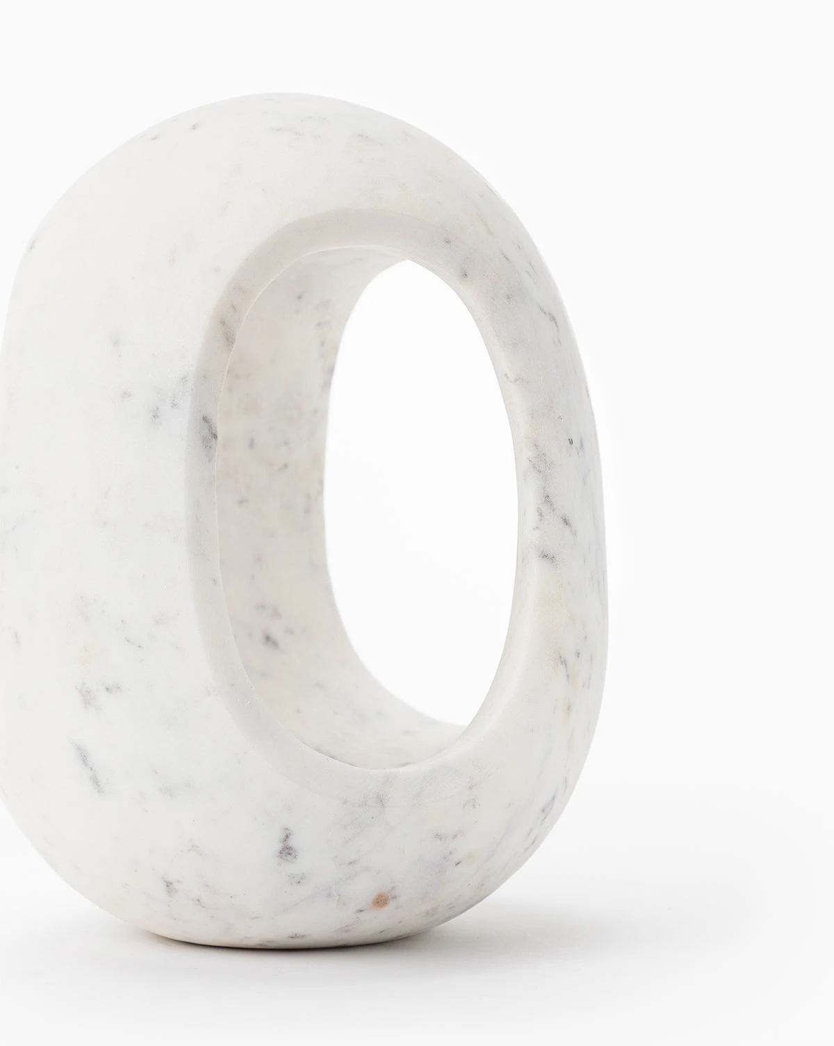 Hand-carved from a single piece of stone, the White Marble Sculpture is a striking accessory with its contemporary form. With an open construction, the white and gray marble add dimension to your space, while maintaining a refined subtlety.