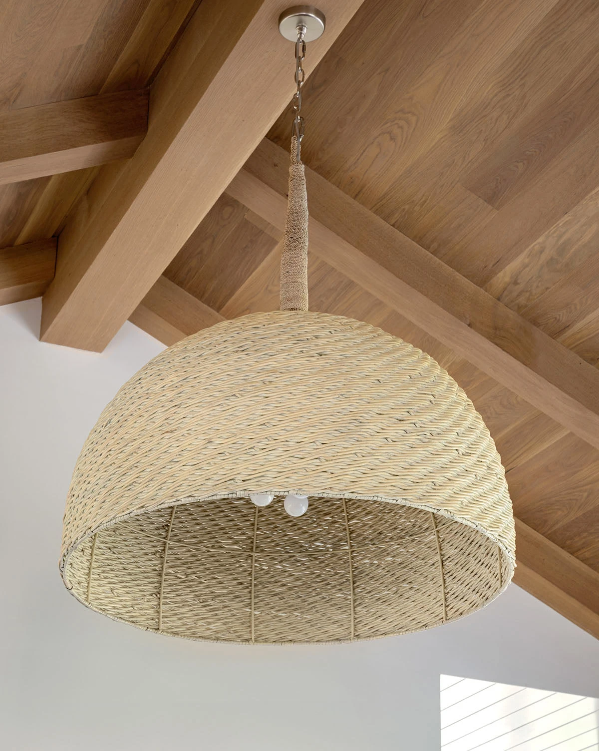 The Wisteria Oversized Pendant evokes a coastal sense of style. With hand-woven synthetic wicker, the piece is accented by a synthetic hand-twisted rope hanger and its whitewash finish adds to the design’s casual appearance.